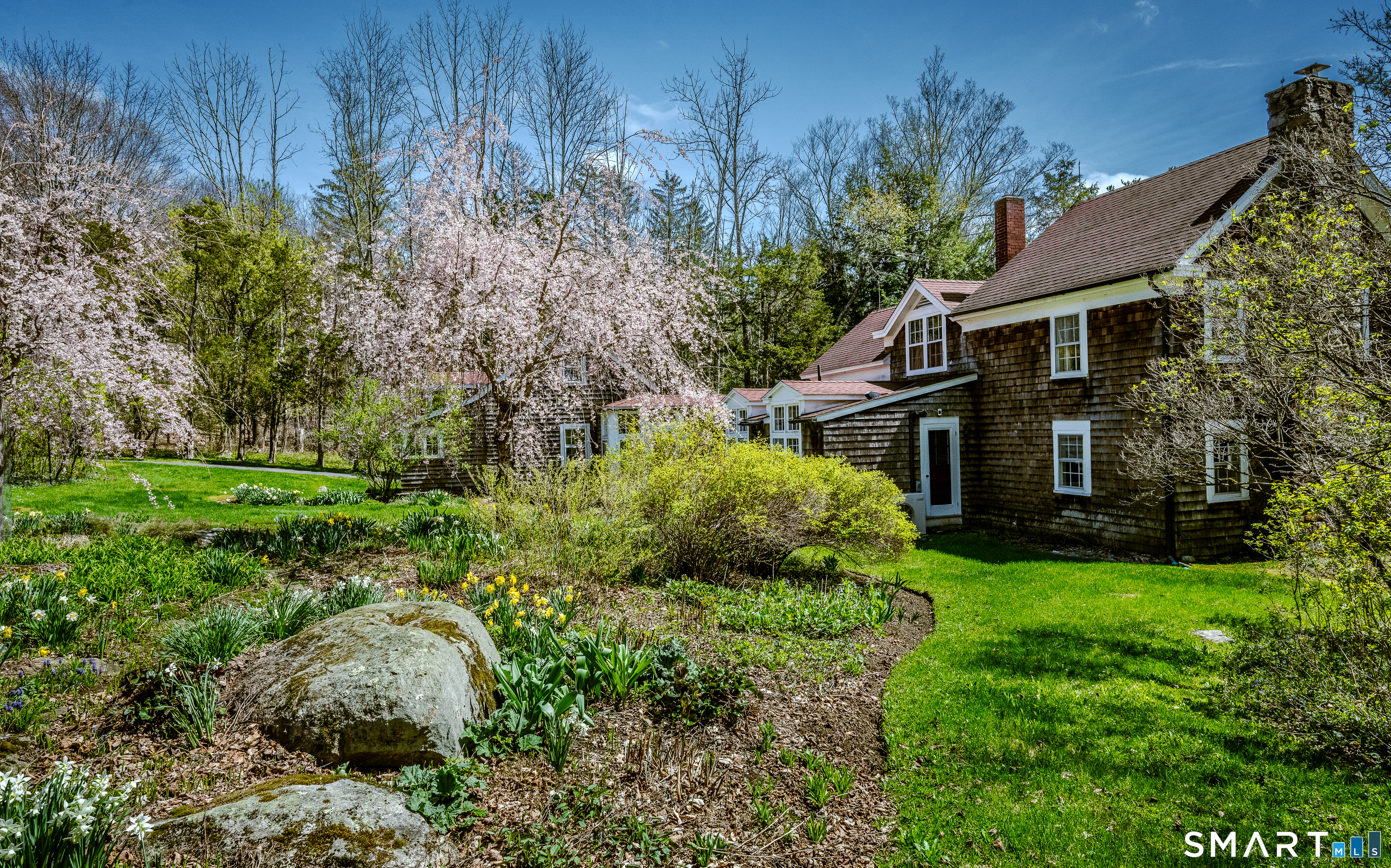 Beautifully renovated antique colonial on 4.5 private acres with a tumbling brook. Hardwood floors and original beams throughout, two wood- burning fireplaces, custom lighting, original wide-plank floors in some rooms, and a gorgeous, country kitchen with built-in appliances, including a warming drawer. The formal dining room anchors the heart of the home, with a small private study for multiple uses on one side, and a large living room on the other side. Every room shows loving attention to detail and comfort. Added onto throughout the years, the house flows comfortably. The original cottage, connected by a light-filled inner hallway with hardwood floors, offers a lovely family room or second living room, with a wood fireplace, a full bath that includes an imported English claw-foot soaking tub, and a cozy upstairs bedroom for guests. There are two large barns: one is a combination garage, tool shed, and wood shed. The other, built using the chestnut beams from the original barn on the property, is capacious, with a cement floor and truly endless possibilities. Gorgeous antique stone walls and perennial gardens abound, and the property is private and protected in the back by its natural landscape. Split air conditioning and a generator assist with comfort without sacrificing authenticity. Close to town and 20 minutes to the Ten Mile River Train Station. This home has been beautifully maintained, and will be standing long after any of our new houses are long gone. Turn Key!